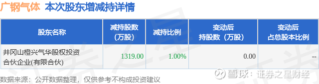 证券之星消息,2月6日广钢气体发布公告《广钢气体:关于股东减持计划实施完毕暨减持股份结果公告》,其股东井冈山橙兴气华股权投资合伙企业(有限合伙)于2026年1月22日至2026年2月6日间合计减持1319.0万股,占公司目前总股本的0.9997%,变动期间该股股价下跌11.0%,截止2月6日收盘报20.72元。