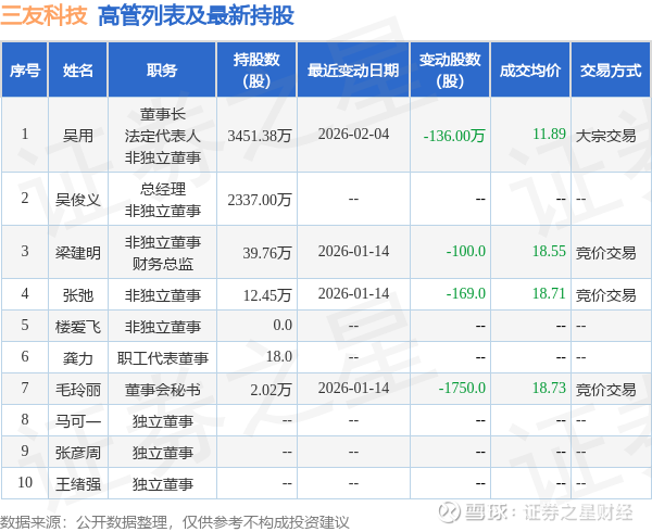 三友科技近半年内的董监高及核心技术人员增减持详情如下: