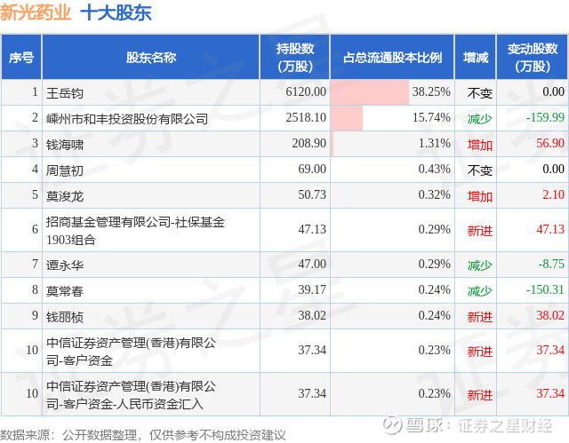 根据新光药业2025年三季报公布的十大股东详情如下: