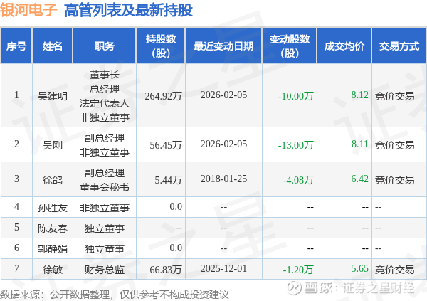 银河电子近半年内的董监高及核心技术人员增减持详情如下: