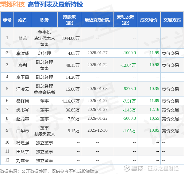 秉扬科技的高管列表及最新持股情况如下: