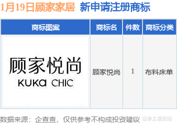 证券之星消息,根据天眼查APP数据显示,近日顾家家居股份有限公司新提交“顾家悦尚”商标注册申请。商标申请详情如下: