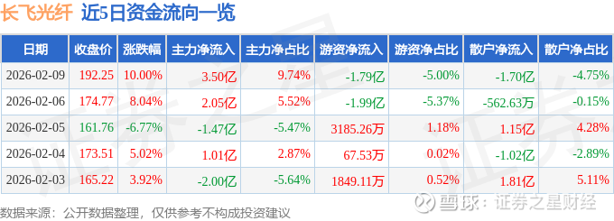 证券之星消息,长飞光纤2月9日涨停收盘,收盘价192.25元。该股于10点54分涨停,4次打开涨停,截止收盘封单资金为8661.19万元,占其流通市值0.11%。