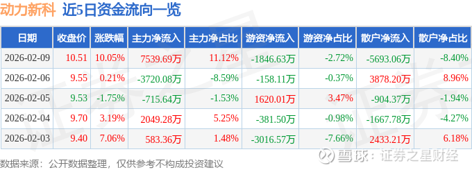 证券之星消息,动力新科2月9日涨停收盘,收盘价10.51元。该股于9点38分涨停,6次打开涨停,截止收盘封单资金为511.84万元,占其流通市值0.05%。