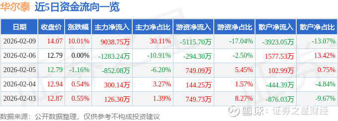 2月9日的资金流向数据方面,主力资金净流入9038.75万元,占总成交额30.11%,游资资金净流出5115.7万元,占总成交额17.04%,散户资金净流出3923.05万元,占总成交额13.07%。