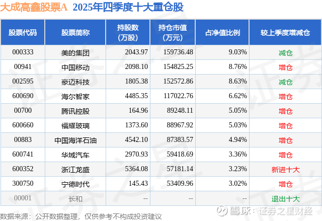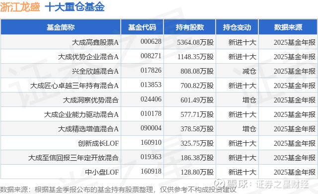 根据2025基金年报公募基金重仓股数据,重仓该股的公募基金共25家,其中持有数量最多的公募基金为大成基金的大成高鑫股票A。大成高鑫股票A目前规模为120.42亿元,最新净值5.3178(2月6日),较上一交易日下跌0.3%,近一年上涨19.11%。该公募基金现任基金经理为刘旭。刘旭在任的基金产品包括:大成优势企业混合A,管理时间为2019年12月24日至今,期间收益率为150.48%;大成核心价值甄选混合A,管理时间为2021年3月15日至今,期间收益率为33.69%;大成匠心卓越三年持有混合A,管理时间为2022年6月7日至今,期间收益率为46.55%。
