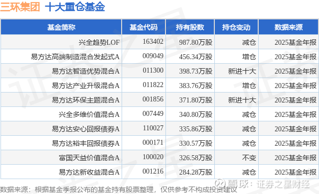 重仓三环集团的前十大公募基金请见下表: