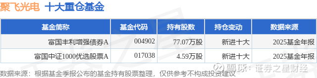 根据2025基金年报公募基金重仓股数据,重仓该股的公募基金共2家,其中持有数量最多的公募基金为富国基金的富国丰利增强债券A。富国丰利增强债券A目前规模为11.62亿元,最新净值1.419(2月6日),较上一交易日上涨0.07%,近一