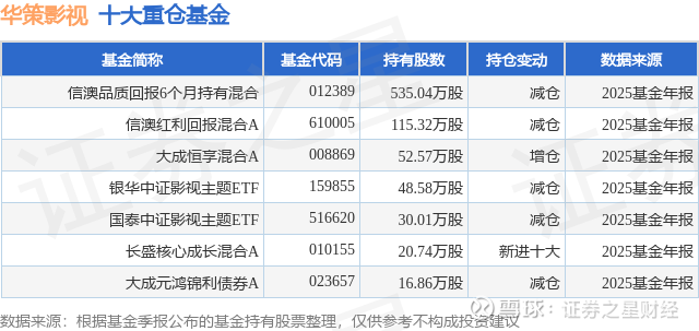 重仓华策影视的公募基金请见下表:
