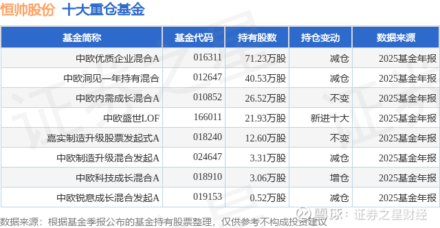 重仓恒帅股份的公募基金请见下表:
