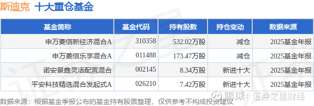 重仓斯迪克的公募基金请见下表: