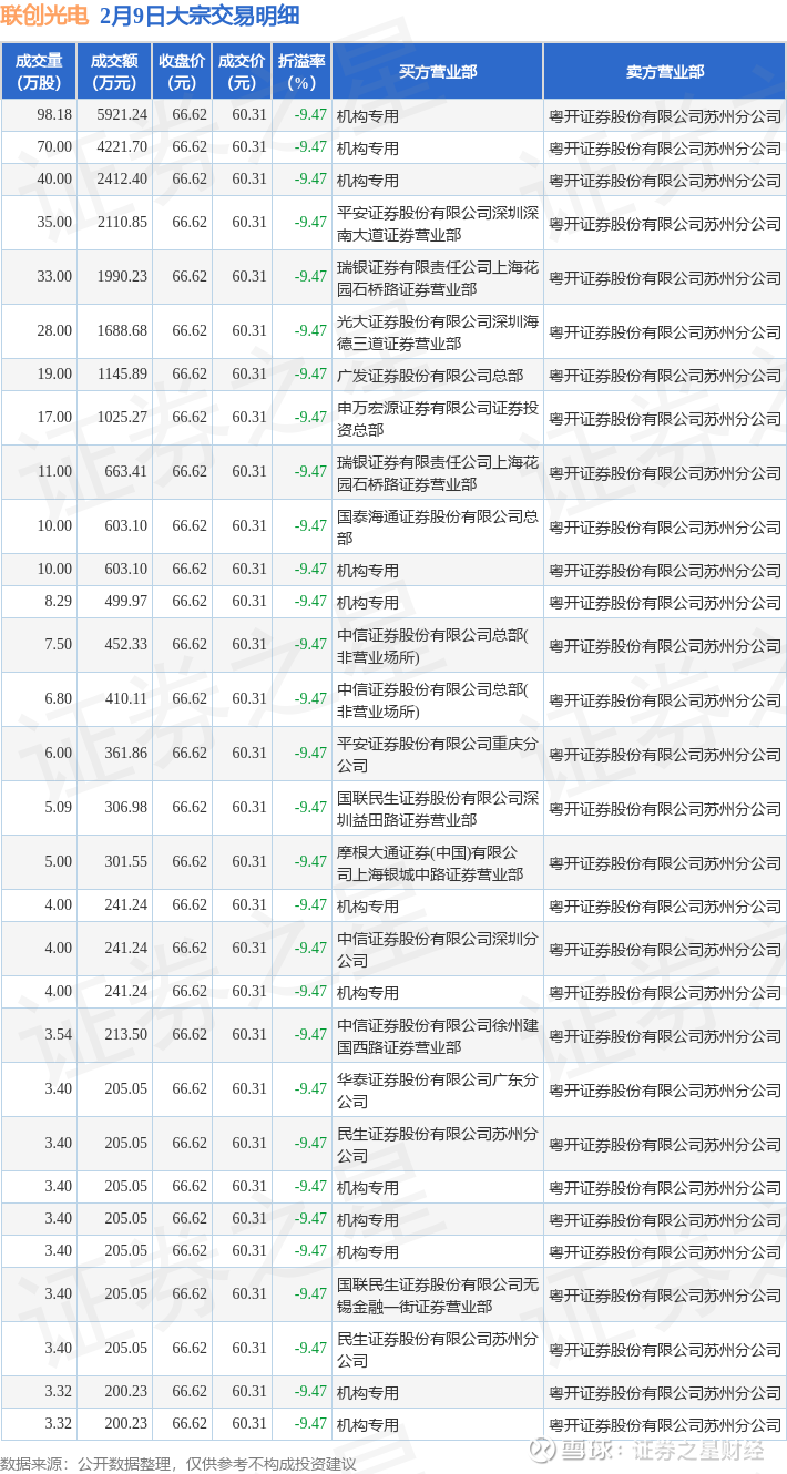 证券之星消息,2月9日联创光电发生大宗交易,交易数据如下: