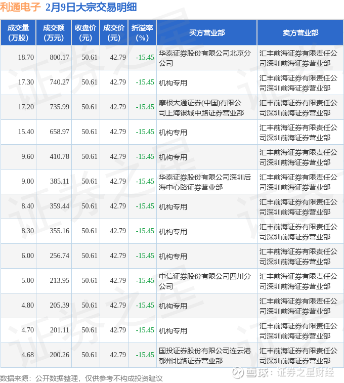 证券之星消息,2月9日利通电子发生大宗交易,交易数据如下: