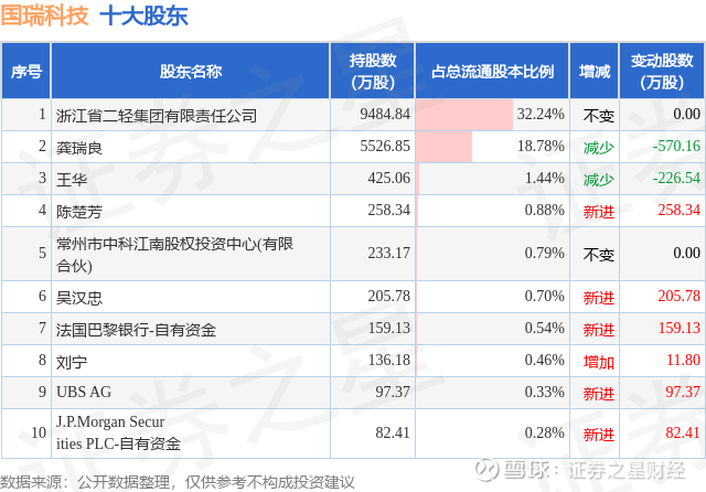 证券之星消息,2月9日国瑞科技发布公告《国瑞科技:关于持股5%以上股东减持股份触及1%整数倍的提示性公告》,其股东龚瑞良于2026年1月7日至2026年2月6日间合计减持294.82万股,占公司目前总股本的1.002%,变动期间该股股价下跌6.94%,截止2月6日收盘报14.09元。
