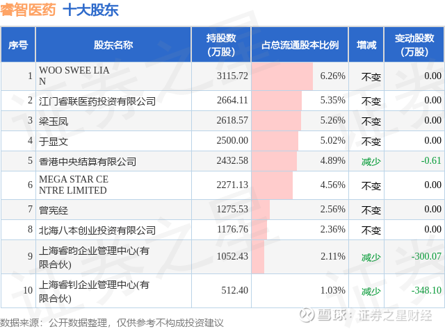 根据睿智医药2025年三季报公布的十大股东详情如下: