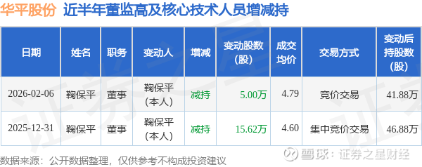 华平股份近半年内的董监高及核心技术人员增减持详情如下: