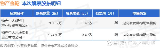 证券之星消息,根据市场公开信息整理,物产金轮(002722)于2月10日将有3107.08万股限售股份解禁,为公司定向增发机构配售股份,占公司总股本13.97%。(本次数据根据历史公告整理得出,实际情况以上市公司最新公告为准)本次解禁后,公司还有1.5万股限售股份,占总股本0.01%。具体如下图所示: