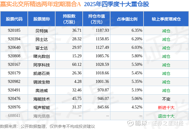 嘉实北交所精选两年定期混合A的前十大重仓股如下:
