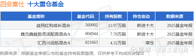 重仓四会富仕的公募基金请见下表: