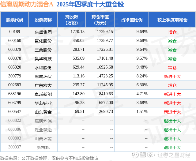根据2025基金年报公募基金重仓股数据,重仓该股的公募基金共3家,其中持有数量最多的公募基金为信达澳亚基金的信澳周期动力混合A。信澳周期动力混合A目前规模为8.66亿元,最新净值2.0702(2月9日),较上一交易日上涨0.83%,近一年上涨61.62%。该公募基金现任基金经理为吴清宇 张明烨。吴清宇在任的基金产品包括:信澳景气优选混合A,管理时间为2021年12月21日至今,期间收益率为81.88%;信澳优势产业混合A,管理时间为2023年5月29日至今,期间收益率为151.92%;信澳匠心严选一年持有混合A,管理时间为2024年11月29日至今,期间收益率为112.22%。张明烨在任的基金产品包括:信澳匠心回报混合A,管理时间为2024年3月11日至今,期间收益率为131.04%;