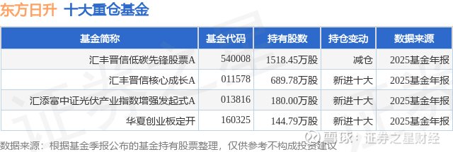 重仓东方日升的公募基金请见下表:
