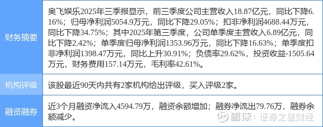 2026年1月29日,华鑫证券研究员朱珠发布了对奥飞娱乐的研报《公司事件点评报告:看AI+IP驱动内容与产品再上台阶》,该研报对奥飞娱乐给出“买入”评级。研报中预测公司2026-2027年收入分别为28.70、30.74亿元,归母净利润分别为1.46、2.01亿元,EPS分别为0.1、0.14元,当前股价对应PE分别为91.3、66.2倍,公司历经2018年游戏版号因子带来的主业波动到2020-2022年内外压力测试业绩承压,2023年公司业绩扭亏为盈,但2024年宏观经济波动下减值测试致利润承压,轻装后2025年归母净利润扭亏为盈,展望2026年,已推出员工持股计划护航业务推进,伴随公司新品供给及AI+IP双轮驱动有望助推公司业绩再上台阶,AI加持下有望赋予公司在手IP不同形式的生命力,通过创造新内容、构建新场景、触发新消费助力其IP商业价值再放异彩,进而维持“买入”投资评级。证券之星数据中心根据近三年发布的研报数据计算,该研报作者对此股的盈利预测准确度为18.44%。