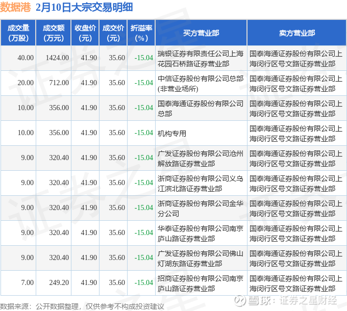 证券之星消息,2月10日数据港发生大宗交易,交易数据如下: