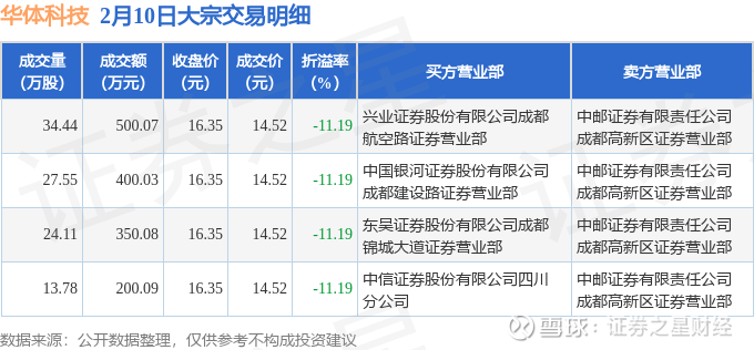 证券之星消息,2月10日华体科技发生大宗交易,交易数据如下: