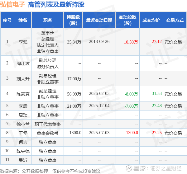 弘信电子的高管列表及最新持股情况如下: