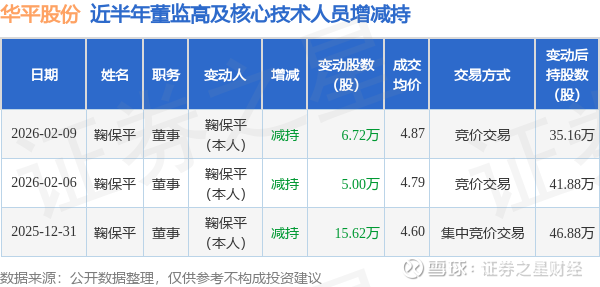 华平股份近半年内的董监高及核心技术人员增减持详情如下: