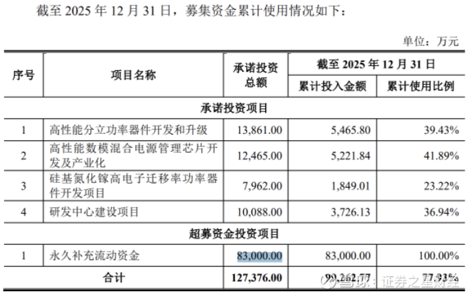 值得注意的是,上述四个项目原定于2024年下半年达到预计可使用状态,目前均已延期至2026年12月31日。截至2025年末,各项目投资进度分别为39.34%、41.89%、23.22%、36.94%。此外,公司已累计使用8.3亿元超募资金用于永久补流,剩余5.57亿元超募资金暂无其他投入计划。