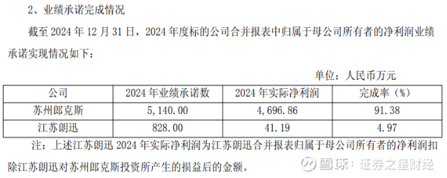 然而从实际完成度看,2024年,苏州郎克斯和江苏朗迅的实际净利润分别为4696.86万元和41.19万元,对应的完成率为91.38%和4.97%,未完成首年的业绩承诺。公司彼时解释称,受新项目前期产品成本较高、毛利率较低等影响,苏州郎克斯该年盈利不及预期;而江苏朗迅由于部分已出货订单未满足收入确认条件等原因导致其收入未达预期。