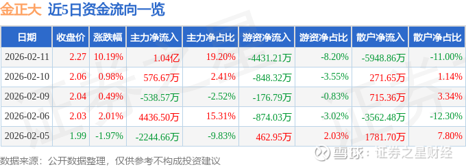 2月11日的资金流向数据方面,主力资金净流入1.04亿元,占总成交额19.2%,游资资金净流出4431.21万元,占总成交额8.2%,散户资金净流出5948.86万元,占总成交额11.0%。