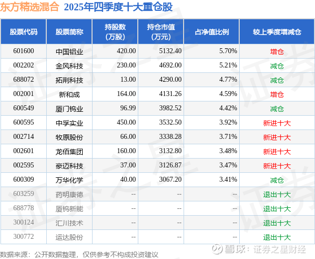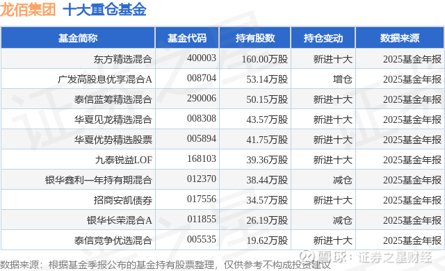 重仓龙佰集团的前十大公募基金请见下表: