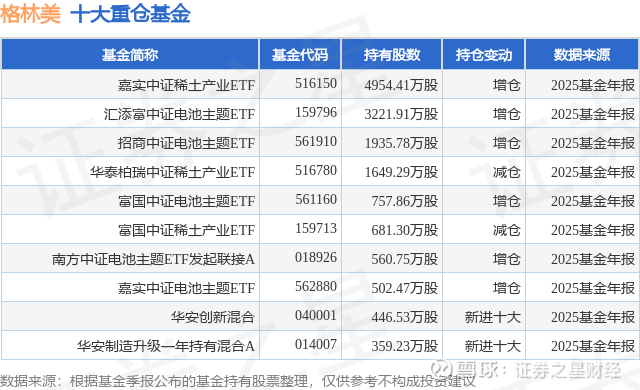 根据2025基金年报公募基金重仓股数据,重仓该股的公募基金共42家,其中持有数量最多的公募基金为嘉实基金的嘉实中证稀土产业ETF。嘉实中证稀土产业ETF目前规模为77.71亿元,最新净值2.0385(2月10日),较上一交易日上涨0.74%,近一年上涨82.97%。该公募基金现任基金经理为田光远。田光远在任的基金产品包括:嘉实中证软件服务ETF,管理时间为2021年6月4日至今,期间收益率为-11.47%;嘉实中证电池主题ETF,管理时间为2021年7月13日至今,期间收益率为-15.17%;嘉实中证稀土产业ETF联接A,管理时间为2021年8月3日至今,期间收益率为39.34%。