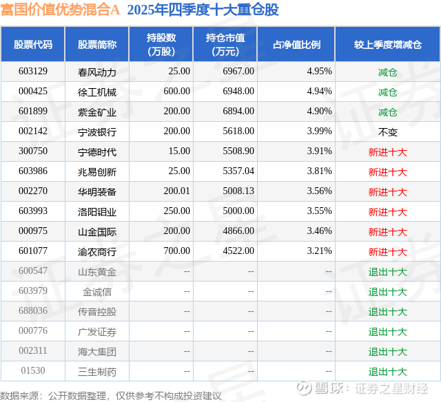 根据2025基金年报公募基金重仓股数据,重仓该股的公募基金共13家,其中持有数量最多的公募基金为富国基金的富国价值优势混合A。富国价值优势混合A目前规模为12.84亿元,最新净值3.9139(2月10日),较上一交易日上涨0.16%,近一年上涨39.34%。该公募基金现任基金经理为孙彬。孙彬在任的基金产品包括:富国融享18个月定开混合A,管理时间为2020年5月25日至今,期间收益率为85.04%;富国沪深300基本面精选股票A,管理时间为2021年6月1日至今,期间收益率为19.2%;富国红利混合A,管理时间为2021年12月21日至今,期间收益率为33.17%。