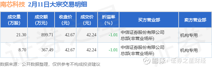 证券之星消息,2月11日南芯科技发生大宗交易,交易数据如下: