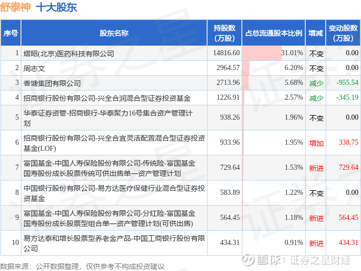 根据舒泰神2025年三季报公布的十大股东详情如下: