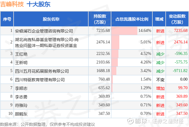 根据吉峰科技2025年三季报公布的十大股东详情如下: