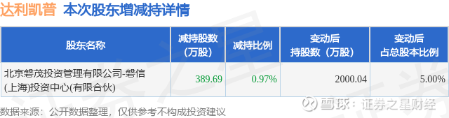 证券之星消息,2月11日达利凯普发布公告《达利凯普:简式权益变动报告书》,其股东北京磐茂投资管理有限公司-磐信(上海)投资中心(有限合伙)于2026年1月15日至2026年2月10日间合计减持389.69万股,占公司目前总股本的0.9742%,变动期间该股股价上涨0.0%,截止2月10日收盘报21.68元。