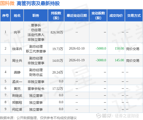 国科微近半年内的董监高及核心技术人员增减持详情如下: