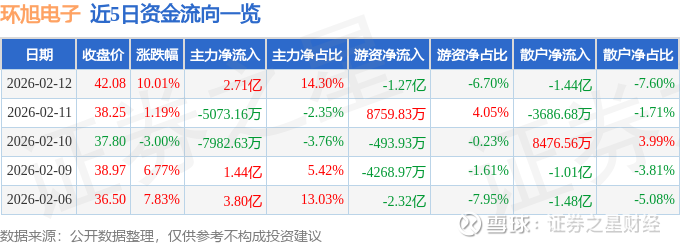 2月12日的资金流向数据方面,主力资金净流入2.71亿元,占总成交额14.3%,游资资金净流出1.27亿元,占总成交额6.7%,散户资金净流出1.44亿元,占总成交额7.6%。