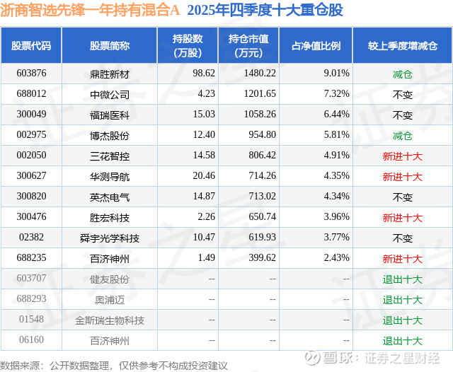 浙商智选先锋一年持有混合A的前十大重仓股如下: