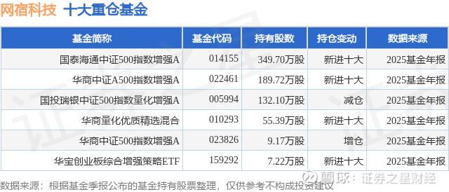 重仓网宿科技的公募基金请见下表: