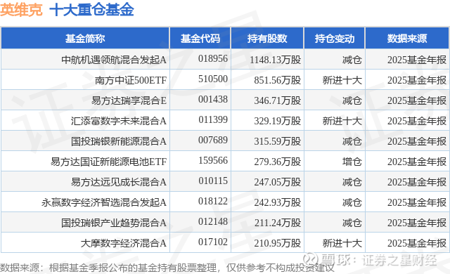 根据2025基金年报公募基金重仓股数据,重仓该股的公募基