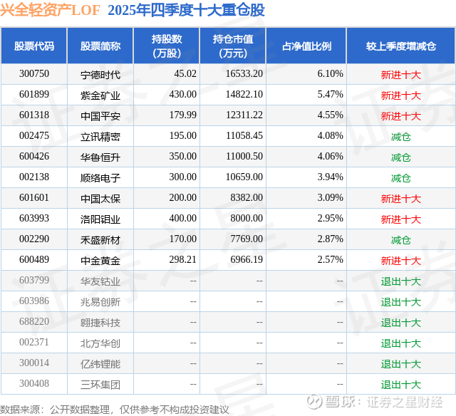 兴全轻资产LOF的前十大重仓股如下: