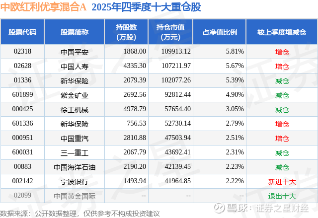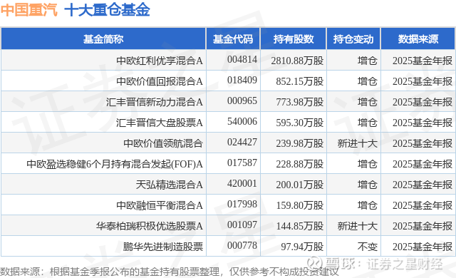 根据2025基金年报公募基金重仓股数据,重仓该股的公募基金共20家,其中持有数量最多的公募基金为中欧基金的中欧红利优享混合A。中欧红利优享混合A目前规模为99.38亿元,最新净值2.4364(2月11日),较上一交易日上涨0.3%,近一年上涨57.2%。该公募基金现任基金经理为蓝小康。蓝小康在任的基金产品包括:中欧融恒平衡混合A,管理时间为2023年3月21日至今,期间收益率为68.74%;中欧价值回报混合A,管理时间为2023年6月9日至今,期间收益率为87.93%;中欧价值领航混合,管理时间为2025年10月20日至今,期间收益率为7.58%。