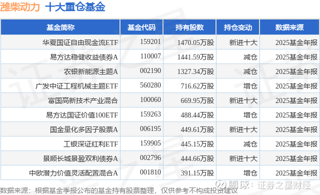 重仓潍柴动力的前十大公募基金请见下表: