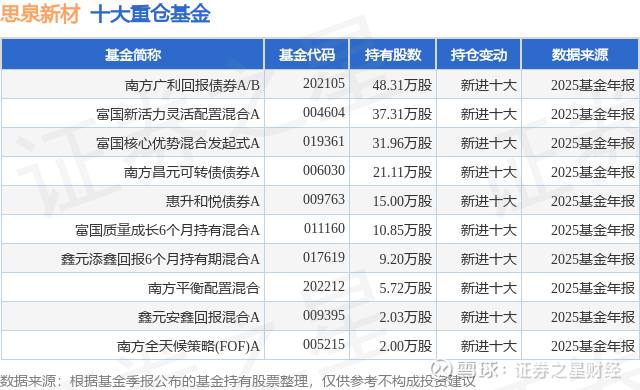 重仓思泉新材的前十大公募基金请见下表: