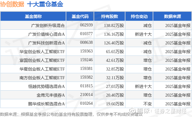 重仓协创数据的前十大公募基金请见下表: